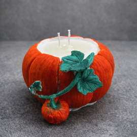 Sonbaharın sıcak ve huzurlu atmosferini yaşam alanlarınıza taşıyan vanilya kokulu balkabağı mum, hem dekoratif hem de doğal yapısıyla öne çıkar.;%100 soya mumdan üretilmiş olup, alçıdan yapılmış şık balkabağı formundaki kabı sayesinde bulunduğu ortama estetik bir dokunuş katar.;Doğal vanilya kokusu, yandığında ortamı boğmadan yumuşak ve rahatlatıcı..