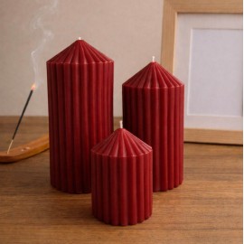 3’LÜ ÇİZGİLİ SİLİNDİR DEKORATİF MUM SET